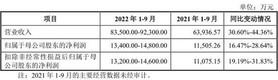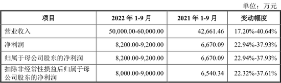 圣晖集成招股书称,预计2022年前三季度实现净利润8500万元至1.05亿元,同比下滑3.54%至上升19.16%。