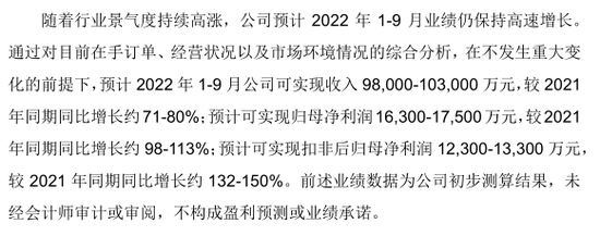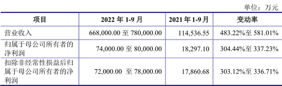 万润新能招股书称,预计2022年前三季度实现净利润7.4亿元至8.0亿元,同比增长304.44%至337.23%。