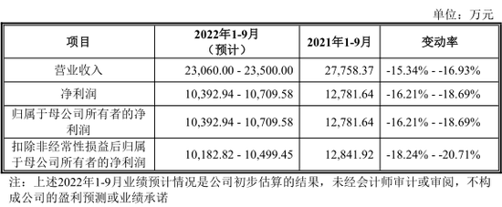 近岸蛋白招股书称,预计2022年前三季度实现净利润1.04亿元至1.07亿元,同比变动-16.21%至-18.69%。