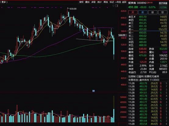 今天上午A股市场表现总体依旧低迷,多数个股走低,多只医美赛道股突然大跌,其中千亿市值医美龙头爱美客一度重挫逾12%。