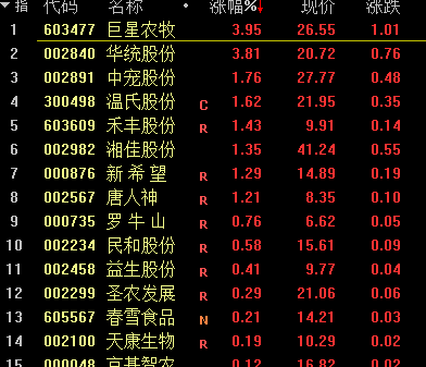 随着国庆长假的临近,除了旅游、酒店餐饮等板块继续走强外,鸡肉、猪肉等板块也出现异动。今日早盘,鸡肉板块指数一度直线拉升涨近2%,巨星农牧、华统股份等涨幅居前;猪肉板块亦同步拉升,牧原股份等涨幅居前。
