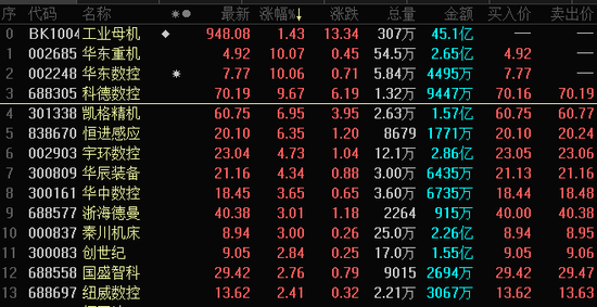 受工业机床等硬科技ETF快速获批消息影响,工业母机板块早盘异动拉升,截至发稿,华东数控、华东重机涨停,科德数控、明志科技等跟涨。