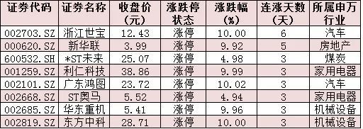 表:今日涨停且已连续上涨3个交易日以上个股情况: