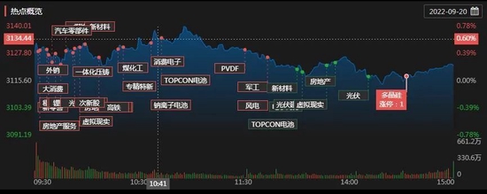 9月20日,A股三大指数震荡反弹,集体收涨。截至收盘,上证指数涨0.22%报3122.41点,深证成指涨0.69%报11283.92点,创业板指涨0.7%报2366.9点;两市合计成交金额6510亿元,创17个月新低,北向资金净卖出5.23亿元。总体来看,A股个股涨多跌少。