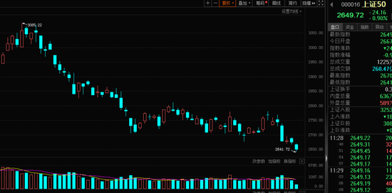 上证50指数也继续回调,最低下探至2641.72点,跌破5月份低点。大势调整下大盘蓝筹股也无法幸免,证券时报·数据宝统计,千亿市值股票中有15只个股年内跌幅超过40%,药明康德(维权)、伊利股份、海螺水泥等个股近期创出年内新低。