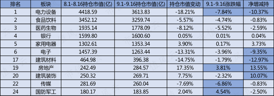 而9月上中旬,31个板块仅有6个板块实现上涨,其中国防军工和房地产板块领涨。随着房地产政策逐步“松绑”,嗅觉一向灵敏的北向资金对房地产和建筑装饰板块大幅加仓超10%。