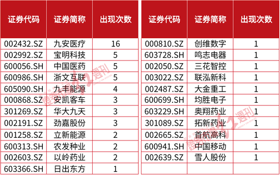 此外,不同于其他游资,方新侠在看好的标的上会反复操作。据统计,安凯客车近期的龙虎榜中就有3次出现中信证券西安朱雀大街营业部的身影,今年上半年的牛股九安医疗,更是有16次(见表6)。