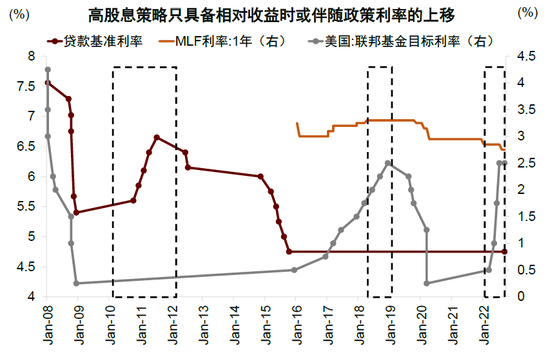 图表:高股息策略在只具备相对收益时,可能还伴随着利率的上移