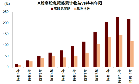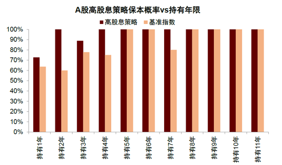 图表:持有时间越长,高股息策略跑赢基准的概率越高