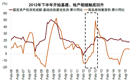 图表:2012年下半年开始基建、地产等经济部门触底反弹,助力经济基本面阶段性企稳