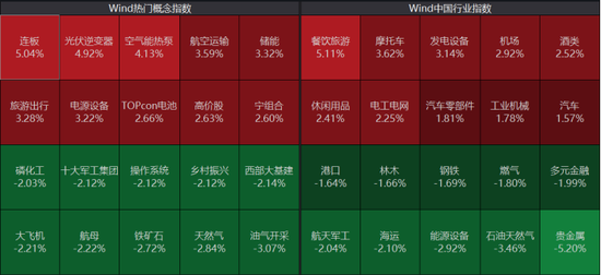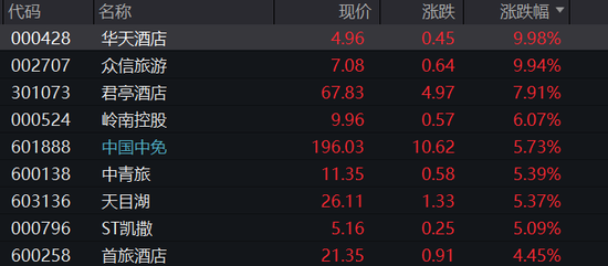 行业板块方面,酒店餐饮板块领涨,华天酒店、众信旅游盘中涨停。