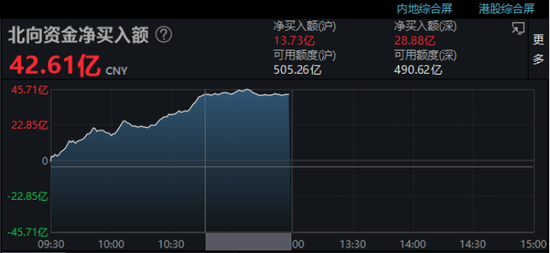 不过,今天上午A股市场一个明显的亮点是,北向资金大幅回流,半天净买入超过40亿元,达到42.61亿元。