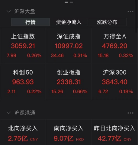 上午临近收盘,食品饮料板块大反攻,良品铺子等多股涨停。截至上午收盘,上证指数上涨0.26%,深证成指上涨0.31%,创业板指上涨0.66%,北向资金净流入2.75亿元。