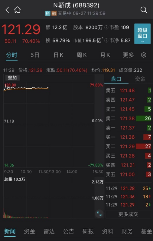 今日上午,科创板新股N骄成上涨70.4%,盘中涨超75%。
