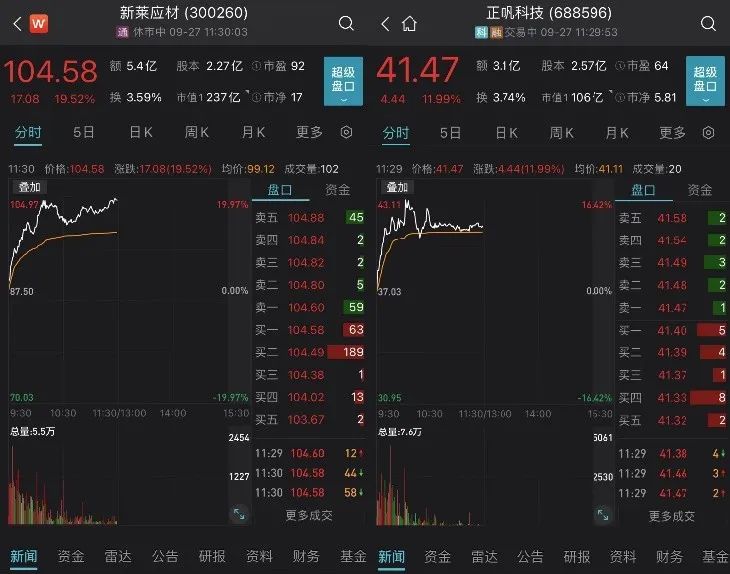 今日上午,半导体板块率先反弹,新莱应材(维权)、正帆科技分别上涨19.52%、11.99%,盘中股价均创下历史新高。