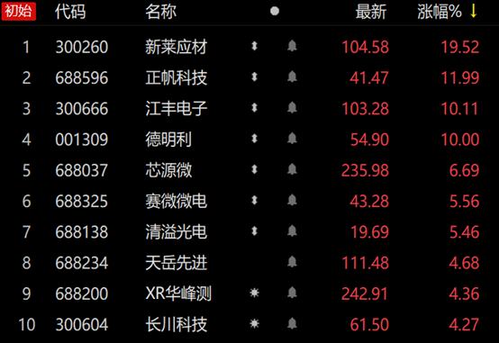值得注意的是,涨幅领跑的个股多为半导体零部件/材料公司,其中,新莱应材、正帆科技盘中创下股价历史新高。