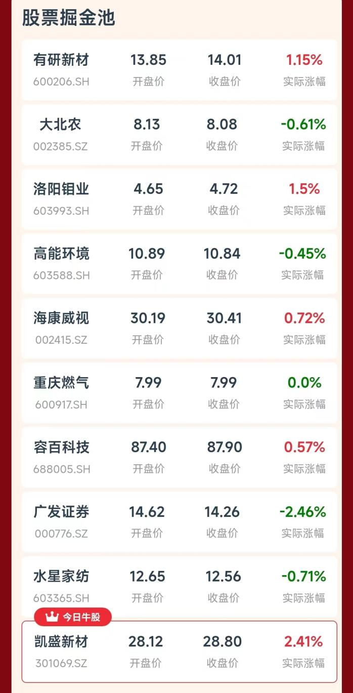 今日的“竞猜掘金牛股”名单如下: