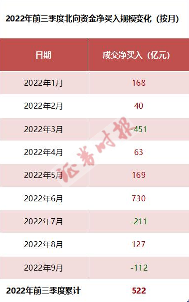 不过,总的来看,今年前三季度北向资金总体仍呈现净买入,累计净买入超过500亿元,达522亿元。