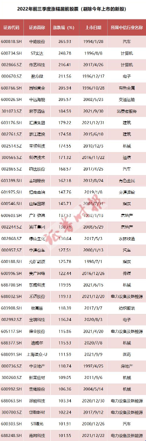 观察上述涨幅居前的股票,汽车、机械、电力设备及新能源等行业个股相对较多。