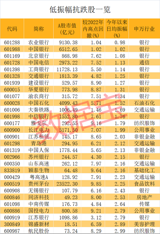 低振幅抗跌股名单出炉,银行业入围最多