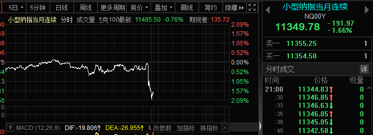 美股盘前期指亦一度上涨,但随后跳水。纳指期货一度跳水近2%。