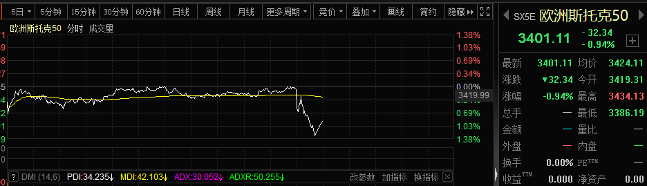 周五晚间,欧美股市再度出现跳水行情。首先来看欧洲市场,欧洲斯托克50指数从微涨直落1%以上。