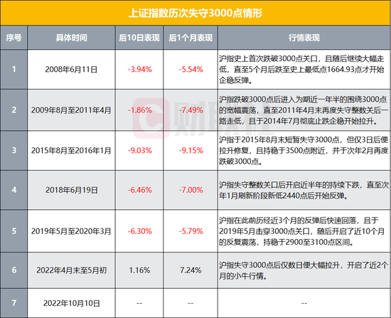 注:后10日/1个月表现均以阶段行情中最后一次跌破3000点关口的交易日计算