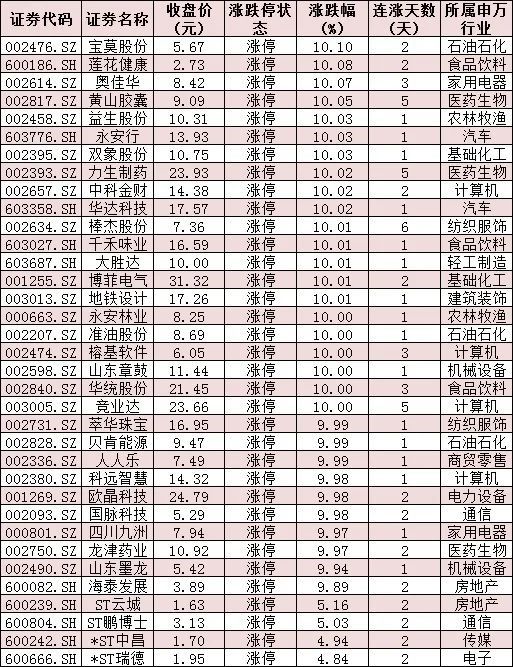 表:今日涨停个股情况: