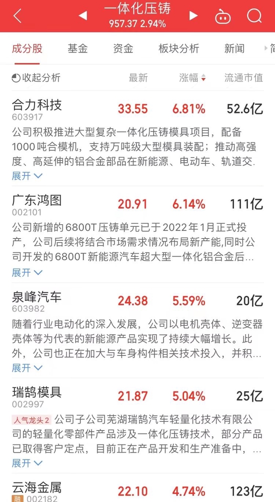 此外,汽车产业链板块也走势活跃。从个股上来看,云海金属涨近5%;中石科技“20cm”涨停,合力科技、广东鸿图涨超6%,均胜电子、祥鑫科技等涨停。