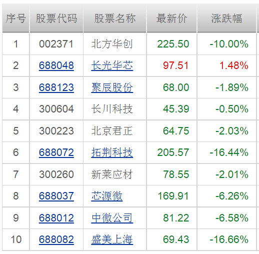 10号,前十大重仓股中仅聚辰股份单日跌幅未超过10%。今天继续下跌,其中北方华创下跌10%,拓荆科技下跌16.44%,盛美上海下跌16.66%。