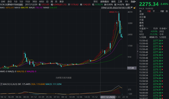 从季线也可以看到,美国费城半导体指数在近四个季度的下跌幅度,创下历史记录。