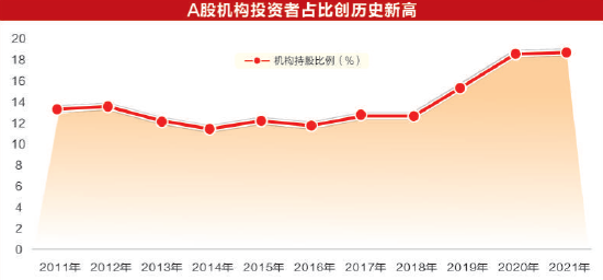 去散户化道阻且长,A股机构化进程稳步推进。剔除一般法人,以持股市值来估算,截至2021年末,A股机构化比例创历史新高,接近19%,较十年前增加5个百分点以上。