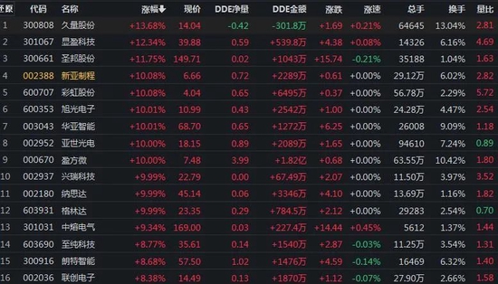 10月12日,电子行业涨幅居首,达4.41%。其中,彩虹股份、可川科技、盈方微(维权)、新亚制程、兴瑞科技、亚世光电、旭光电子、格林达、纳思达、华亚智能等10只概念股联袂涨停。
