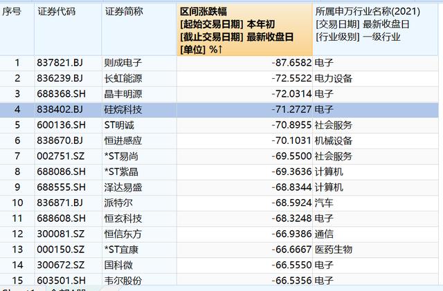 在下一轮行情展开之前,我们梳理了沪深两市涨跌幅居前的个股。今年以来,最火热的光伏、新能源汽车等新能源板块并没有诞生出涨幅居前的牛股,甚至都没有正宗光伏或锂电股排进年涨幅前20名。相反,带着半导体、钠离子电池等热门概念的小市值股“霸占”着涨幅榜前列。也要看到的是,因热门题材实现股价大涨的个股,最终能否兑现多少真实业绩表现需投资者保持关注。