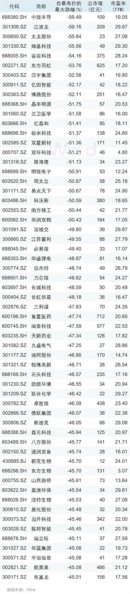 // 69家低估值公司最大跌幅超45% //