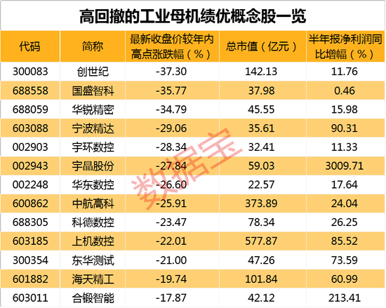 多只的工业母机概念股目前处于阶段低位,最新收盘价较年内高点回调超30%,山东威达、西仪股份、天润工业回调幅度均超45%。半年报业绩绩优的创世纪、国盛智科、华锐精密的回调幅度均超30%。