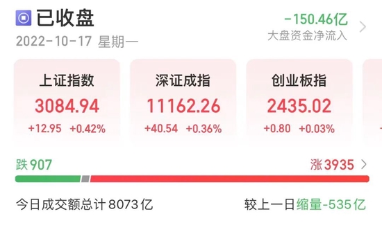 10月17日,A股整体低开高走,收盘时上证指数、深证成指、沪深300指数、创业板指等均实现翻红。上证指数报收3084.94点,日线录得五连阳。