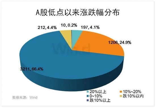 Wind数据显示,沪深两市4836只个股,低点以来共有4614只上涨,占比高达95.4%。