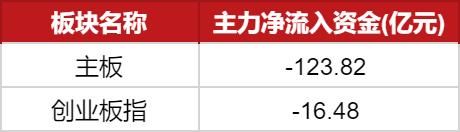 分板块来看,受空头力量较强影响,主板和创业板资金净流向均为净流出,净流出额分别为123.82亿、16.48亿。