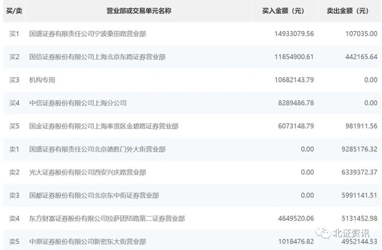 硅烷科技今日的买一是国盛证券有限责任公司宁波桑田路营业部,买二是国信证券股份有限公司上海北京东路证券营业部,买入金额分别超过1000万元;买三出现了机构专用,合计买入金额也超过了1000万元,而卖出金额为0。被称为“拉萨天团”的东方财富证券股份有限公司拉萨团结路第二证券营业部今日也现身卖出榜,买入金额为464万元,卖出513万元。