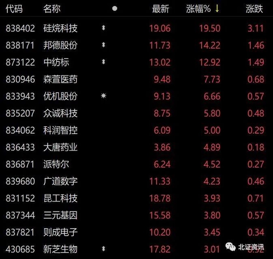 今日北交所个股上涨居多,次新股走势抢眼。