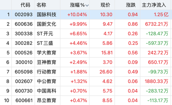 教育板块活跃,国新文化、国脉科技涨停,学大教育、ST开元、中公教育等跟涨。