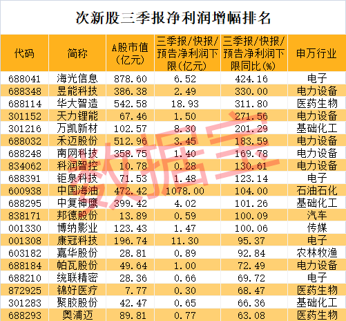 目前A股三季报业绩预告披露密集,不少股票在披露业绩后股价走强,次新股中同样不乏高增长股。