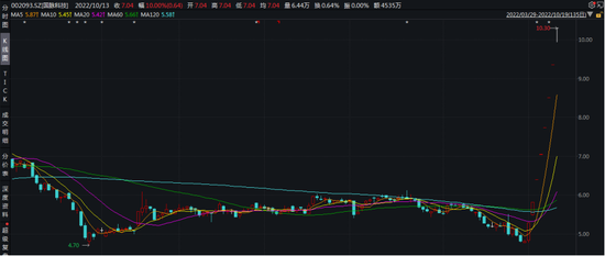 教育板块今日延续了近期的强势。其中,国脉科技再次涨停,截至收盘报10.3元/股,总市值104亿元。这已经是该股连续第8个交易日收获涨停,累计涨幅114.14%。