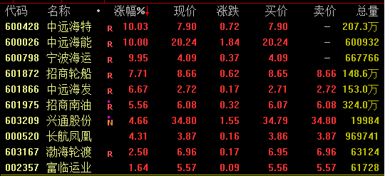 航运板块19日盘中拉升走高,截至收盘,中远海特、中远海能、宁波海运等涨停,招商轮船涨近8%,中远海发涨近7%。