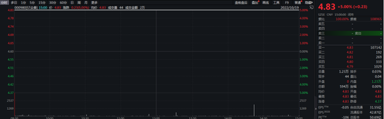 继昨日涨停后,ST众泰今日再次一字涨停。截至收盘,报4.83元/股,仍有超10万手封单,全天换手率0.03%,总市值245亿元。