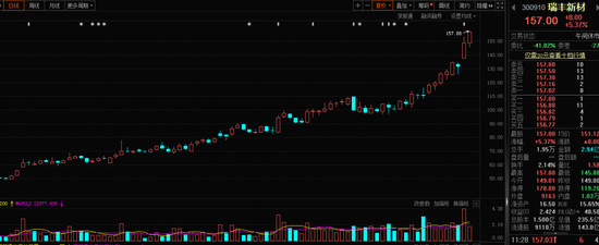 从个股表现来看,瑞丰新材高居涨幅榜第一位,累计涨幅超过90%。此外,国联股份、复旦微电、长盛轴承等涨幅均超过50%。榜单中个股全部逆市上涨,涨幅最小的是长江电力,涨近2%。多只个股三季报高增长,瑞丰新材、复旦微电、国联股份等个股均翻倍增长。