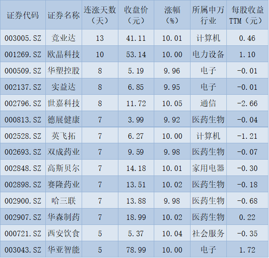 涨跌停股方面,有57只个股以涨停价报收,其中,有14只涨停股股价已连续上涨超过5个交易日;有19只个股以跌停价报收。从申万一级行业看,电子行业涨停股数居首,达14只,紧随其后的是医药生物和计算机,涨停股数均为6只。
