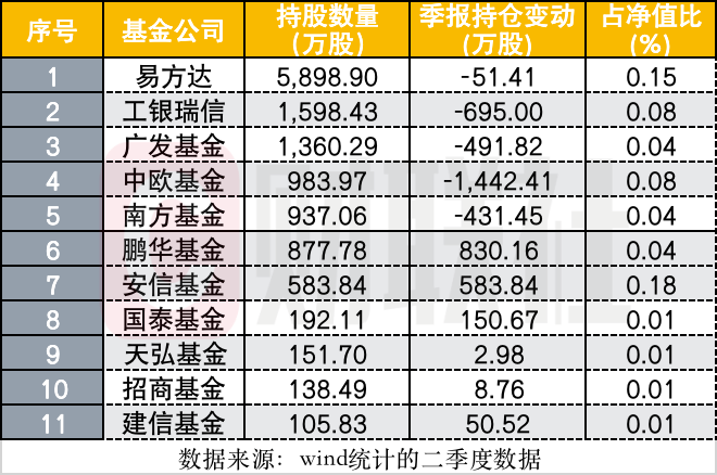 根据wind数据,二季度末,易方达共计持有福耀玻璃5898.9万股,远超其他家基金公司持股数量。包括易方达在内,持股数量排名居前的头部机构中,工银瑞信、广发基金、中欧基金、南方基金均在二季度减持了福耀玻璃。