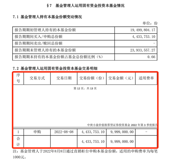 三季报数据显示,中庚基金在8月8日自购丘栋荣管理等中庚小盘价值基金443.38万份,合计金额接近1000万元。今年3月30日,中庚基金也申购了中庚价值品质基金1356.60万份,金额接近2000万元,不过在3月23日,中庚基金赎回了中庚价值灵动基金3160万份,赎回金额超过6500万元。
